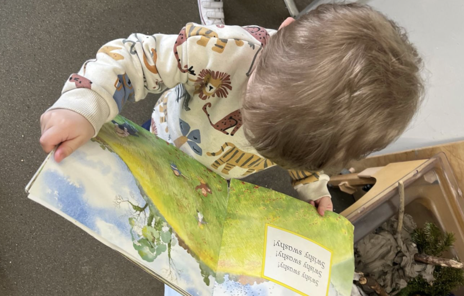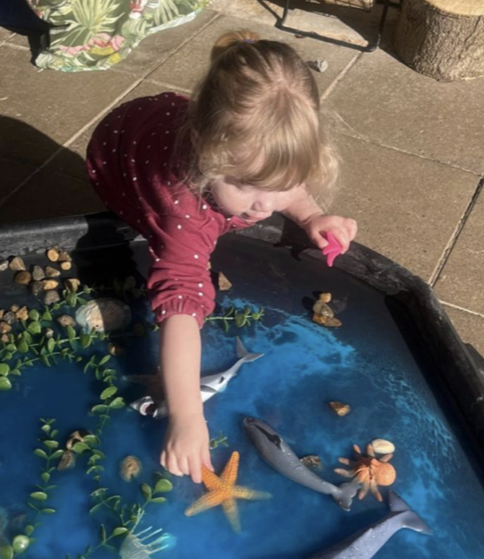You’ll see children painting, exploring nature, constructing, role-playing, and engaging in sensory and messy play, all designed to spark curiosity and creativity. Our practitioners observe carefully and use in the moment planning to adapt the environment and activities based on the children’s interests. Mealtimes, story times, and group activities are used to develop communication, listening skills, and a sense of community within the room.